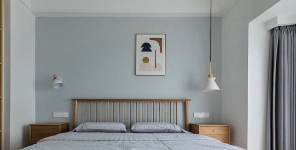 原木色+淡藍色的搭配溫馨舒適,純淨質(zhì)樸的感覺,清晨的第一縷陽光透過窗戶照進來,慵懶清新又舒適~